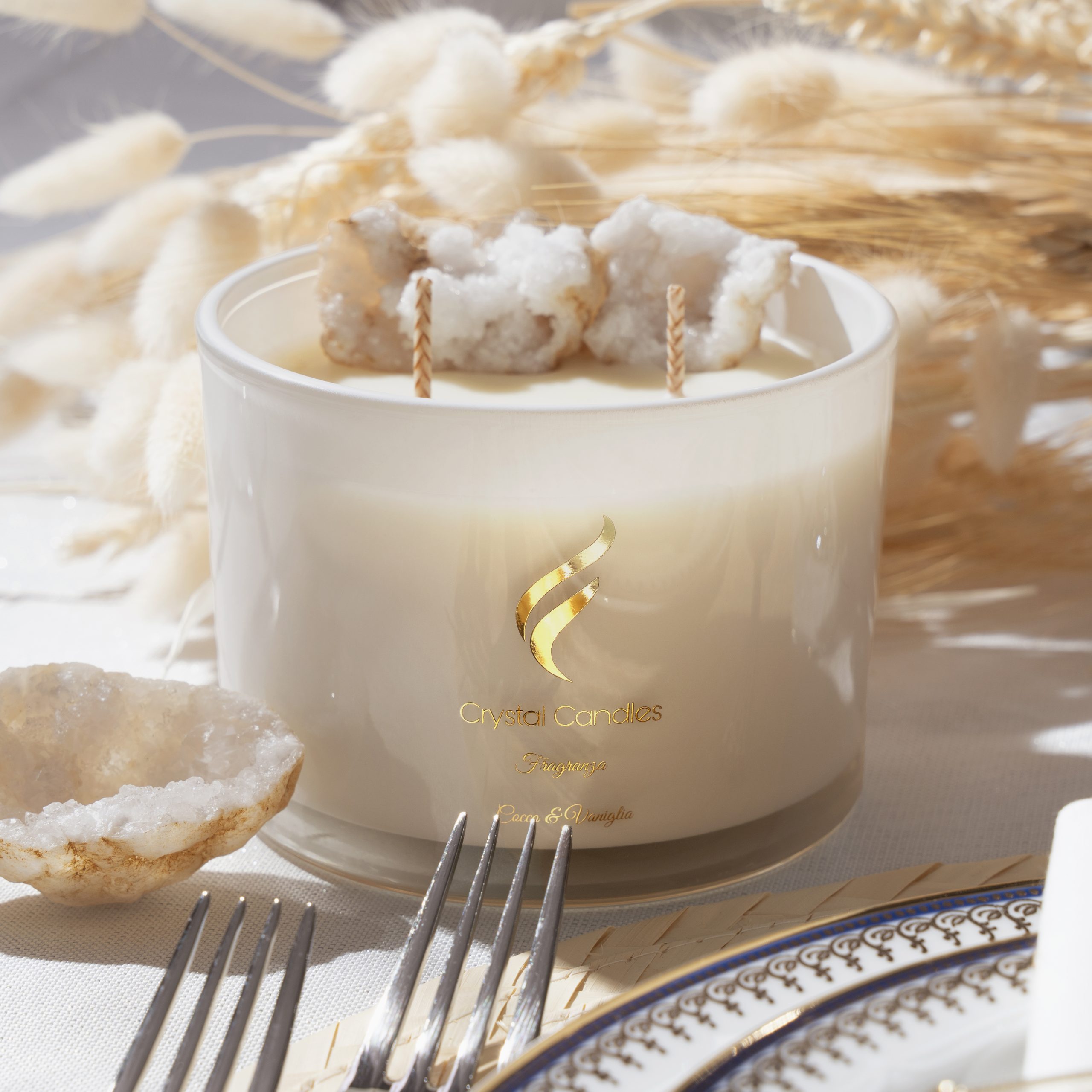 Il geode di quarzo ialino aggiunge tridimensionalità e fascino agli ambienti, armonizzandosi con contesti moderni, minimalisti o boho. La sua forma irregolare rompe la linearità dello spazio, donando equilibrio e originalità.